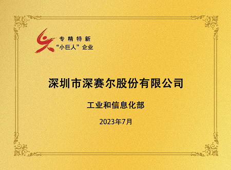 深賽爾榮膺國家專精特新“小巨人”稱號(hào)
