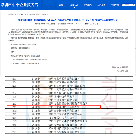 2023年7月21日, 喜報(bào)傳來,在工業(yè)和信息化部組織開展的第五批專精特新“小巨人”企業(yè)培育活動(dòng)中,深圳市深賽爾股份有限公司順利通過審核及公示。